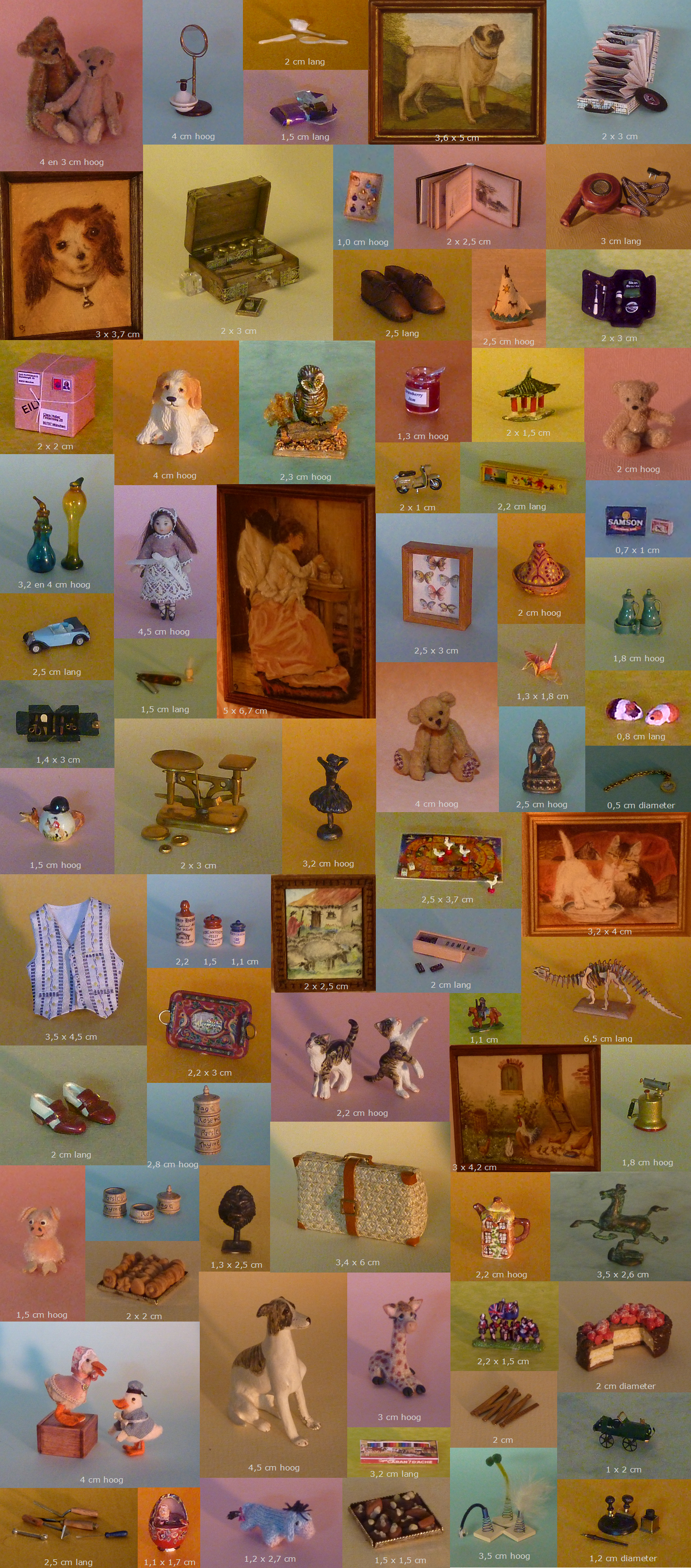 Een klein deel van alle miniaturen die ik heb verzameld. Zowel zelfgemaakte als van andere makers. De foto's zijn niet op ware grootte.