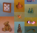 Een klein deel van alle miniaturen die ik heb verzameld. Zowel zelfgemaakte als van andere makers. De foto's zijn niet op ware grootte.